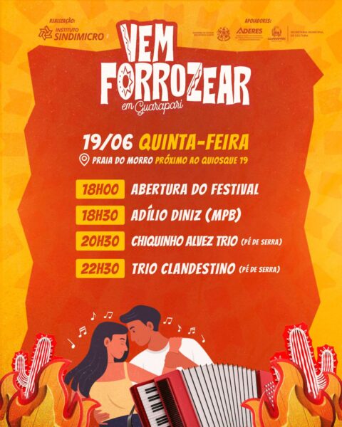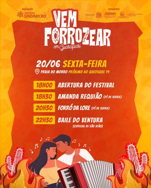Guarapari se prepara para receber, entre os dias 19 e 22 de julho, o “Vem Forrozear”, primeiro festival de forró realizado na cidade. A programação, totalmente gratuita, acontecerá na Praia do Morro e em Santa Mônica, reunindo música, dança, gastronomia típica e feira de artesanato.